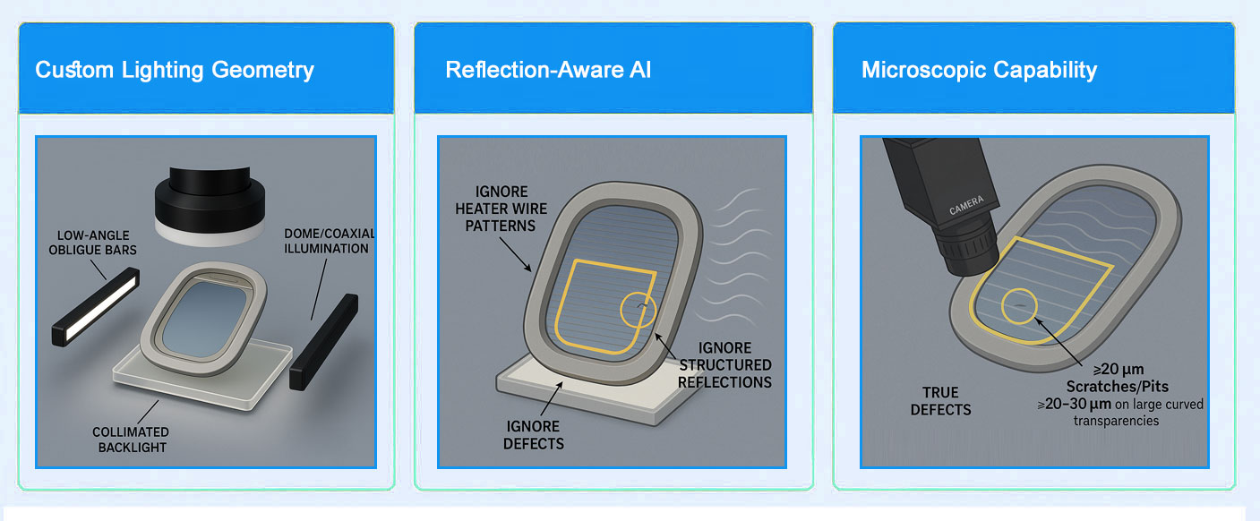 Aircraft windows are transparent, curved, multi-layered, and highly polished, introducing inspection issues that standard systems miss.