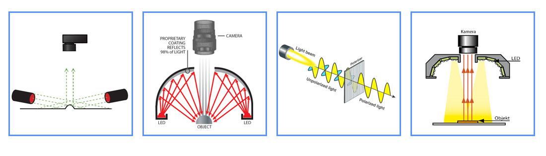 - Polarized Lighting – Suppresses specular reflections, increasing contrast for defects.