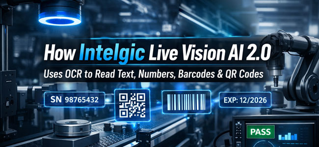 Intelgic’s Live Vision AI 2.0 addresses this using an end-to-end machine vision workflow where industrial cameras + controlled lighting + trigger-based capture + inbuilt OCR/Code reading + post-processing + integrations (PLC/sensors/APIs) work together as a single system. This article explains—step by step—how such an OCR-enabled vision system operates in an industrial environment, and how Live Vision AI 2.0 fits into that workflow.