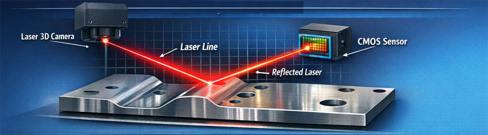 Laser 3D cameras operate using the principle of laser triangulation.