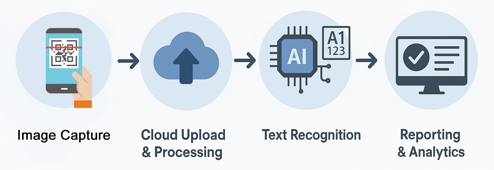 To address this need, Intelgic has developed a powerful mobile OCR solution — a cloud-connected application that allows users to capture and read text from parts using a smartphone camera, powered by Intelgic’s AI-driven text recognition engine in the cloud.
