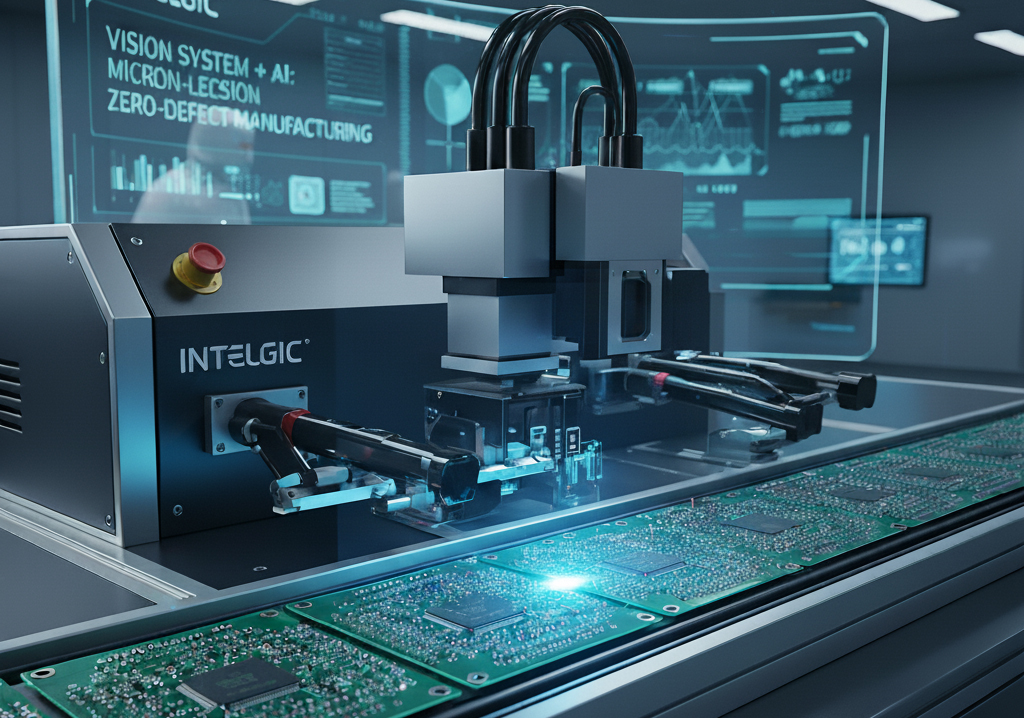 Intelgic delivers turnkey AOI solutions for PCB assembly lines, integrating: