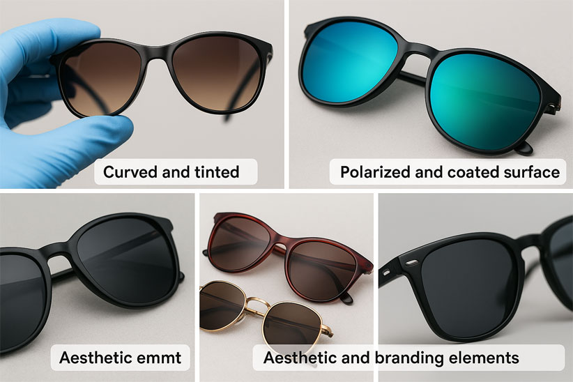 Unlike flat or uniform optical components, sunglasses present unique inspection challenges: